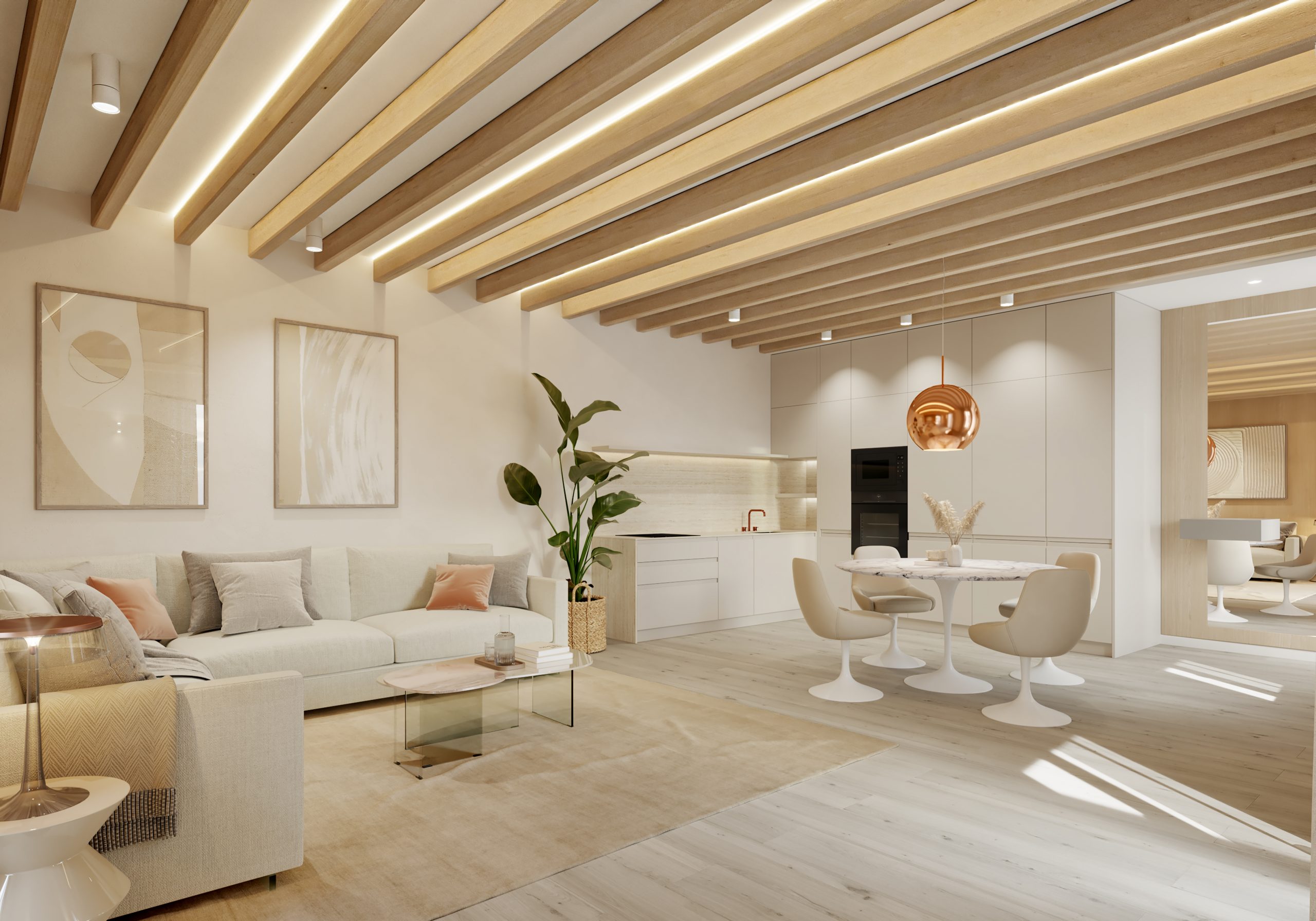 Renders realizados del interior de la casa San Feliu para la reforma del hogar.